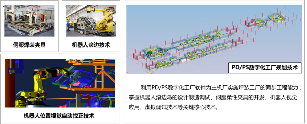 焊裝作業(yè)部主要為用戶提供高柔性、高節(jié)拍、高自動化、高可靠性的焊裝生產(chǎn)線,可與主機(jī)廠工程能力同步。