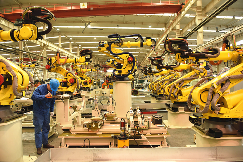 焊裝作業(yè)部員工進(jìn)行機(jī)器人調(diào)試