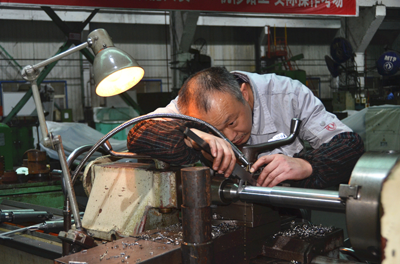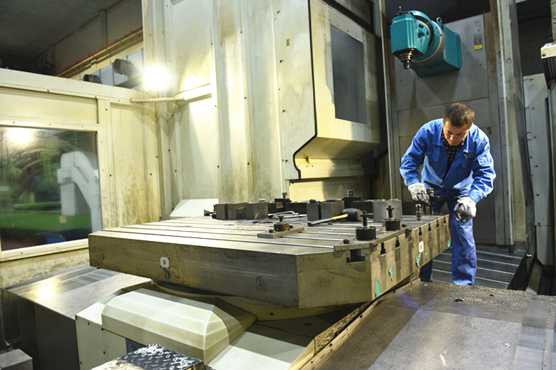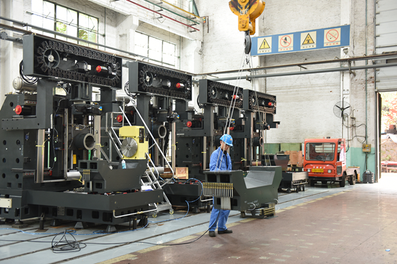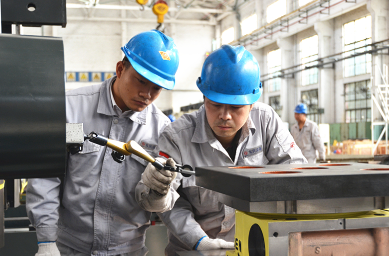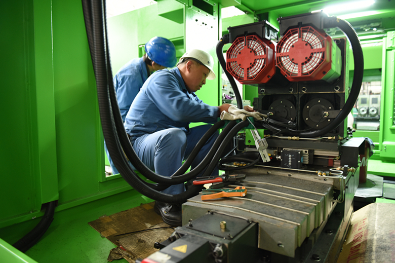 機(jī)床作業(yè)部員工對機(jī)床進(jìn)行安裝調(diào)試